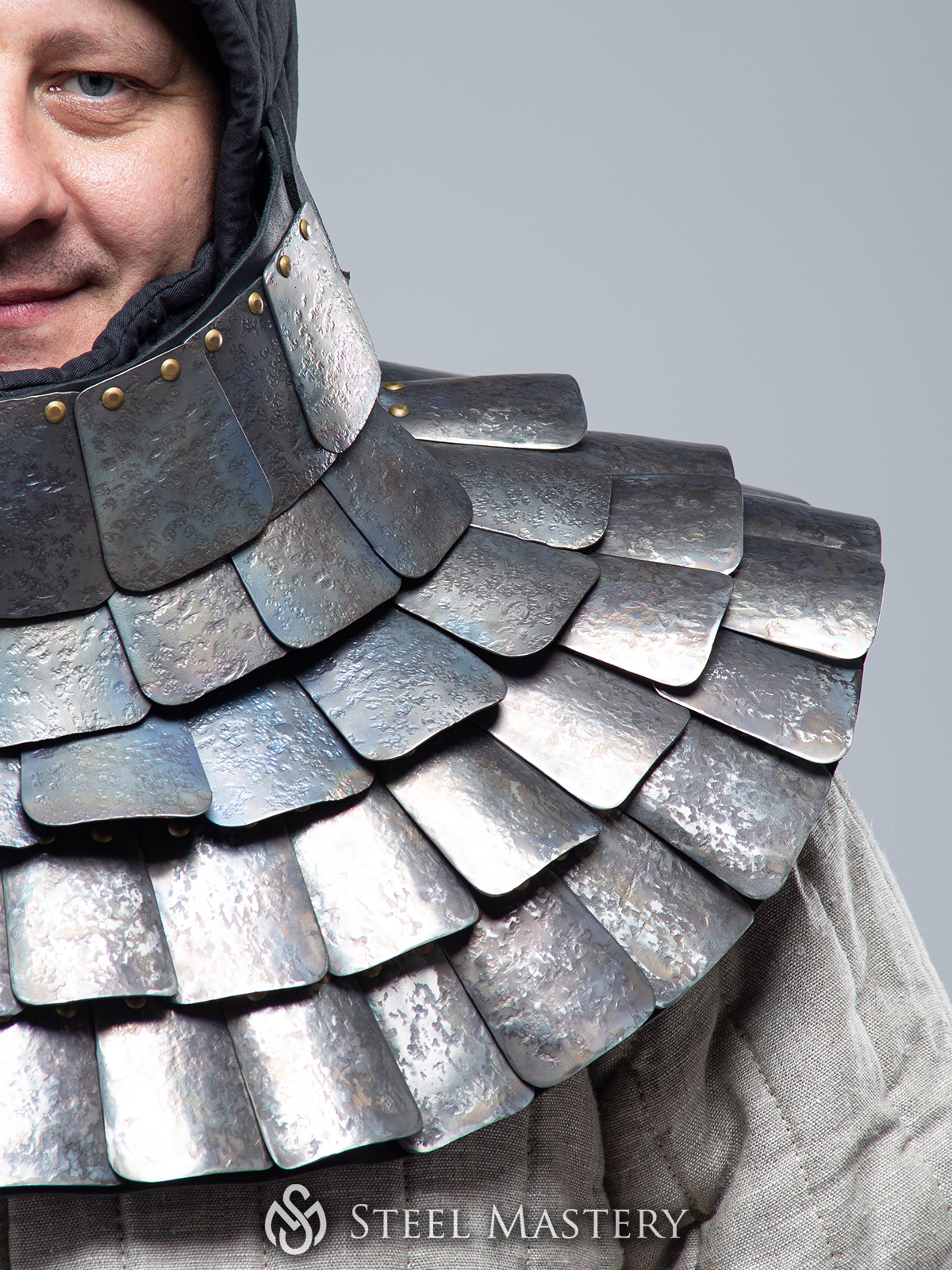 This scale aventail is a good stylization, based on St Mary's Basilica and Chroniques de Froissart pictures. Feel free to use it at SCA battle events, Battle of the Nations, most of medieval festivals, LARP events and stage performances.