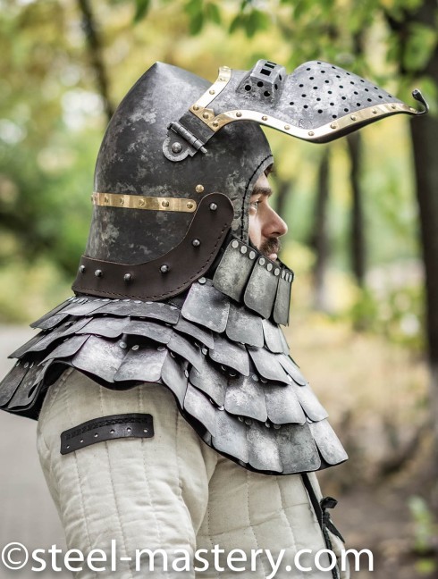 Check out few other helmets, you can use with this aventail: Bascinet with Klappvisor, Bascinet hounskull, early XV century, Onion top bascinet with klappvisor.