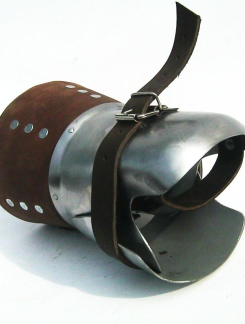 Brigandine mitten for buckler was design by our crafters specially for SCA and HEMA fighters. This mitten is a perfect combination of steel and leather that makes hand armor comfortable and reliable in using.