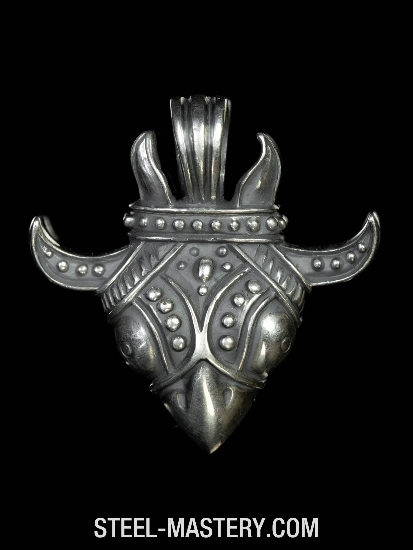 Raven is a bird of prophecy and magical knowledge, symbol, companion, and incarnation of Morrigan – Great Lady of the Ravens. She mournfully walks among the fallen soldiers, mourns ones who died in battle, and gathers their lost souls. Morrigan – the Raven Queen. A detailed replica of an ancient Irish raven head amulet is dedicated to the goddess of war.