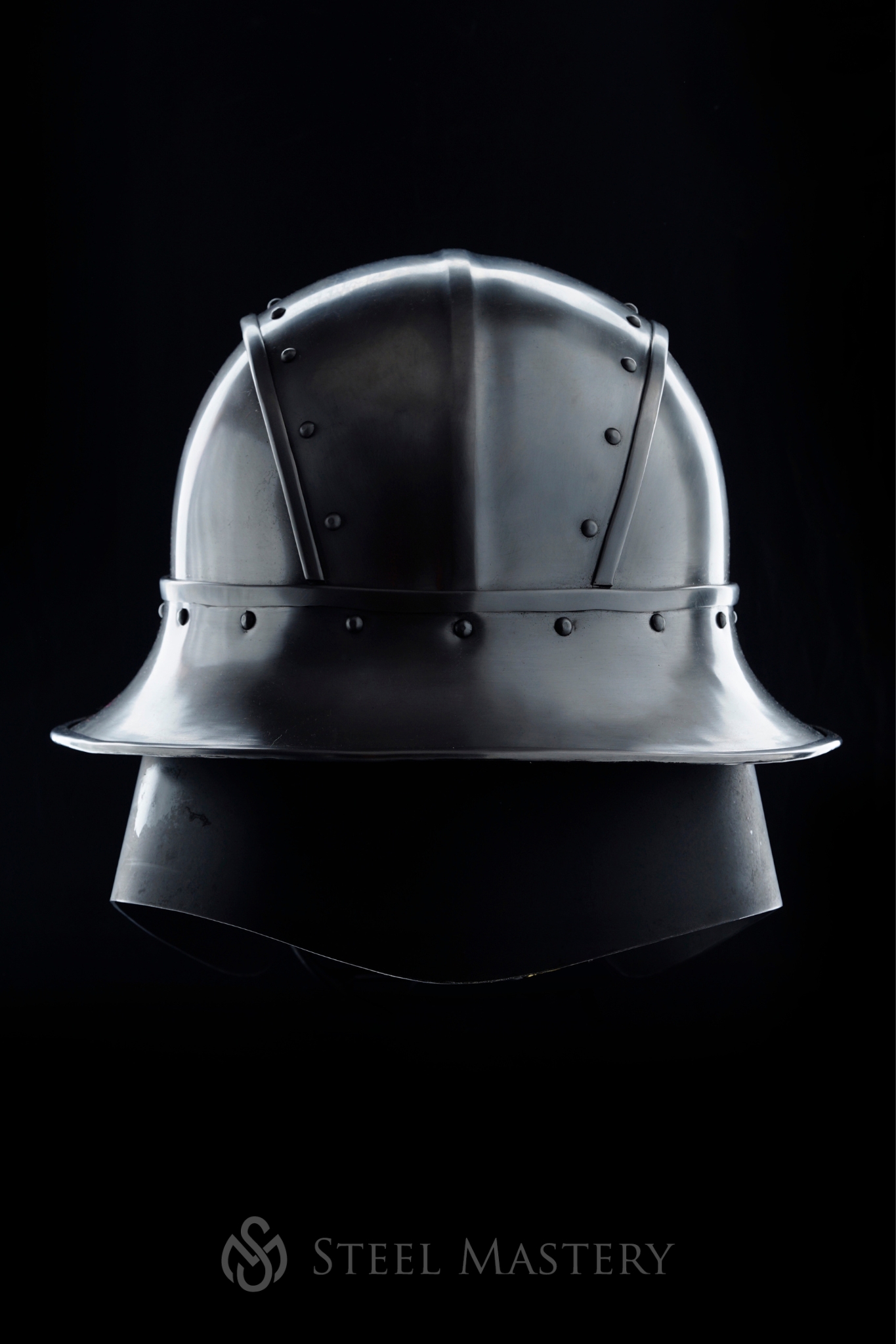 Helmet Chapel-de-Fer was popular among the infantry in the XIII-XVI centuries because of low price and easy producing. Such head protection is a type of medieval helmet Kettle hat – a steel cap with wide brims.