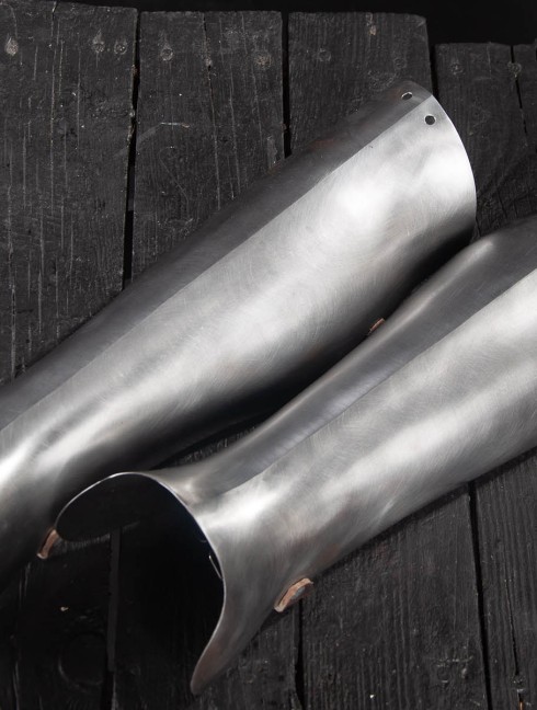 Half-greaves of the XIV-XVI centuries are the popular shin guard among medieval soldiers – as mounted, so dismounted. In combination with cuisses (thigh armor) and kneecaps, these greaves created full leg defense, comfortable and good protecting at the same time.