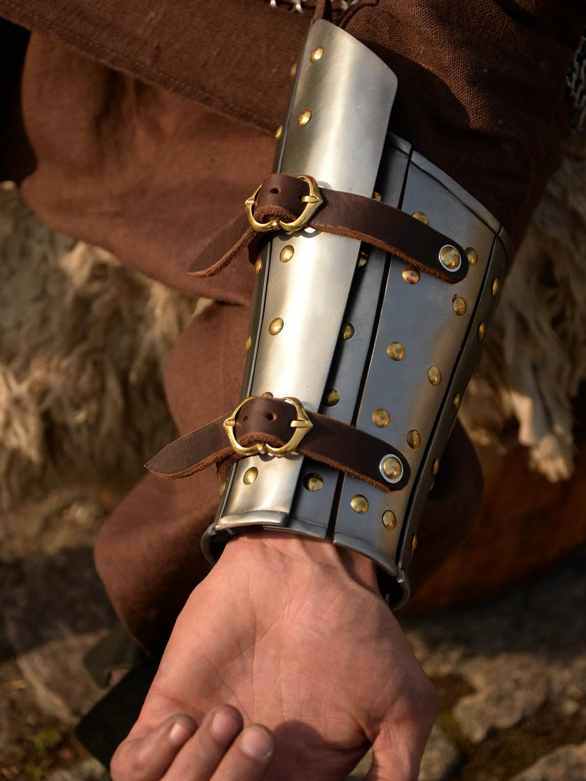 History of this forearm protection is quite interesting. This medieval arm armor is a historical milestone between early plates’ medieval armor and steel plate armor. Epoch of brigandine armor originated dozens of various arm protection and this simple but robust variant was among them.