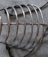 This battle steel helm has a dome, typical for medieval basinet and supplied with bar grill visor.
