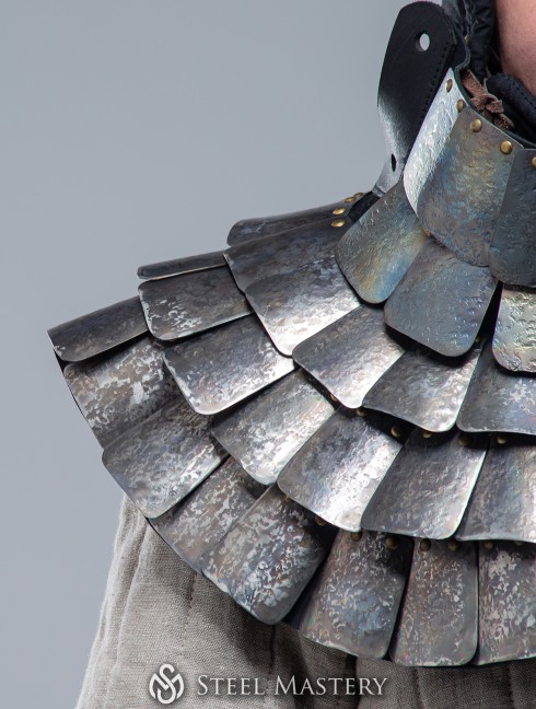 This scale aventail is a good stylization, based on St Mary's Basilica and Chroniques de Froissart pictures. Feel free to use it at SCA battle events, Battle of the Nations, most of medieval festivals, LARP events and stage performances.