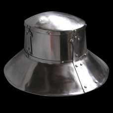 Chapel-de-Fer is a variation of medieval helmet of type Kettle hat (also known as Eisenhut, Kettle helm). This functional head protection was popular in XIII-XVI centuries among soldiers of all military branches because of simpleness of making. Despite of wide variety of models, chapel had one common feature – wide brims.
