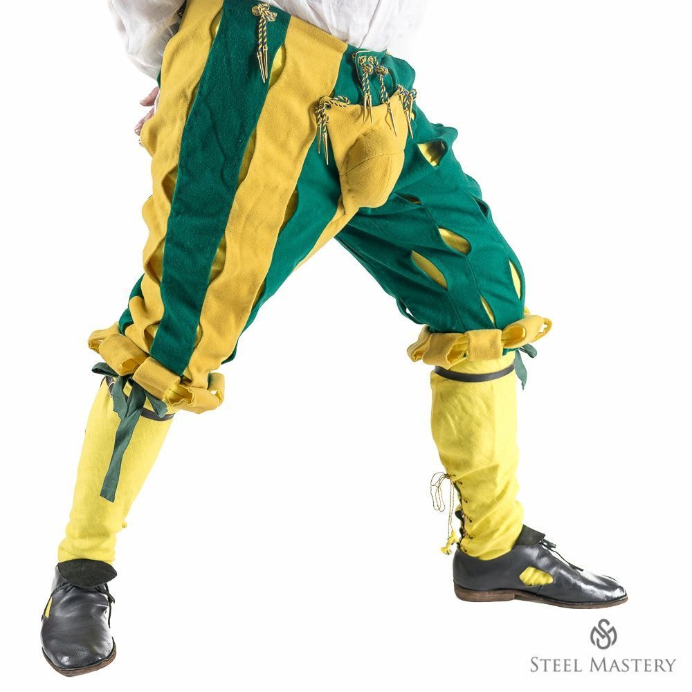 Cuts, where a lining could be seen, a lot of elements and decoration, bright colours - these features are typical for a garb of German sellsword.