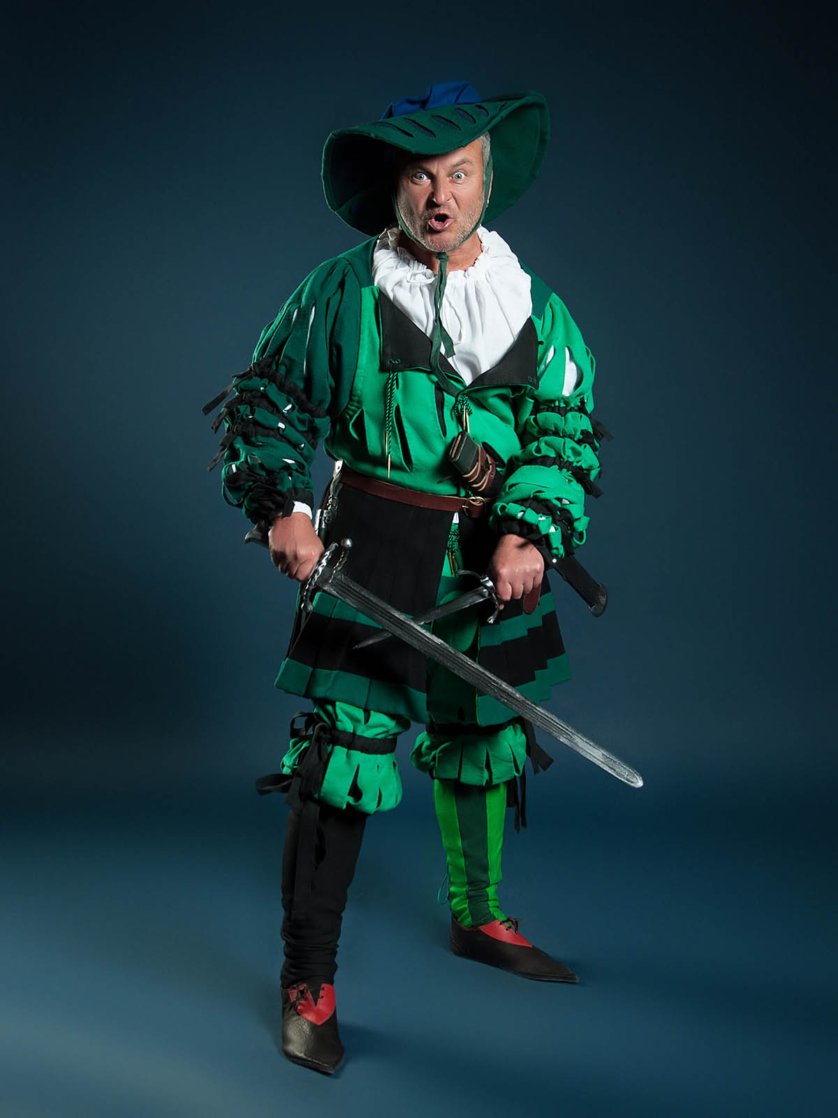 Variety of colours in one costume, a lot of details and cuts, where a lining could be seen - these features are typical for a garb of German sellsword.