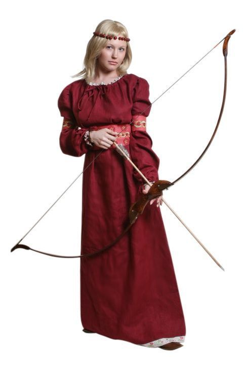 The dress with lacing on the round neckline and puffed sleeves has open cut and provides the freedom of movements.