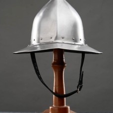 Helmet Chapel (or Kettle helmet or Eisenhut) was popular from the early XIII century until the end of the XVI century among infantry. Such medieval helmets were well-known for its shape of brimmed hat.