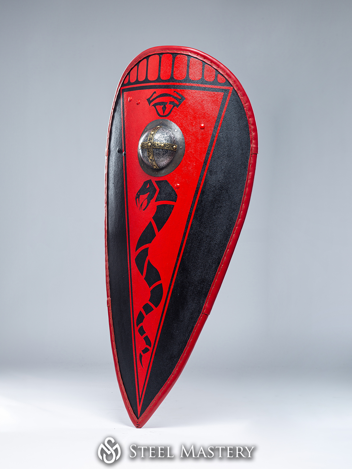 Kite shield is a type of medieval defense, which was popular in the X-XIV centuries all over Europe and Rus’. It is also known as almond shield due to its shape, pointing at the bottom.