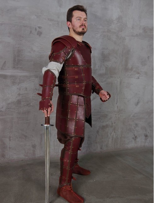 Set of leather armour is handcrafted in style of fantasy series "Game of Thrones".