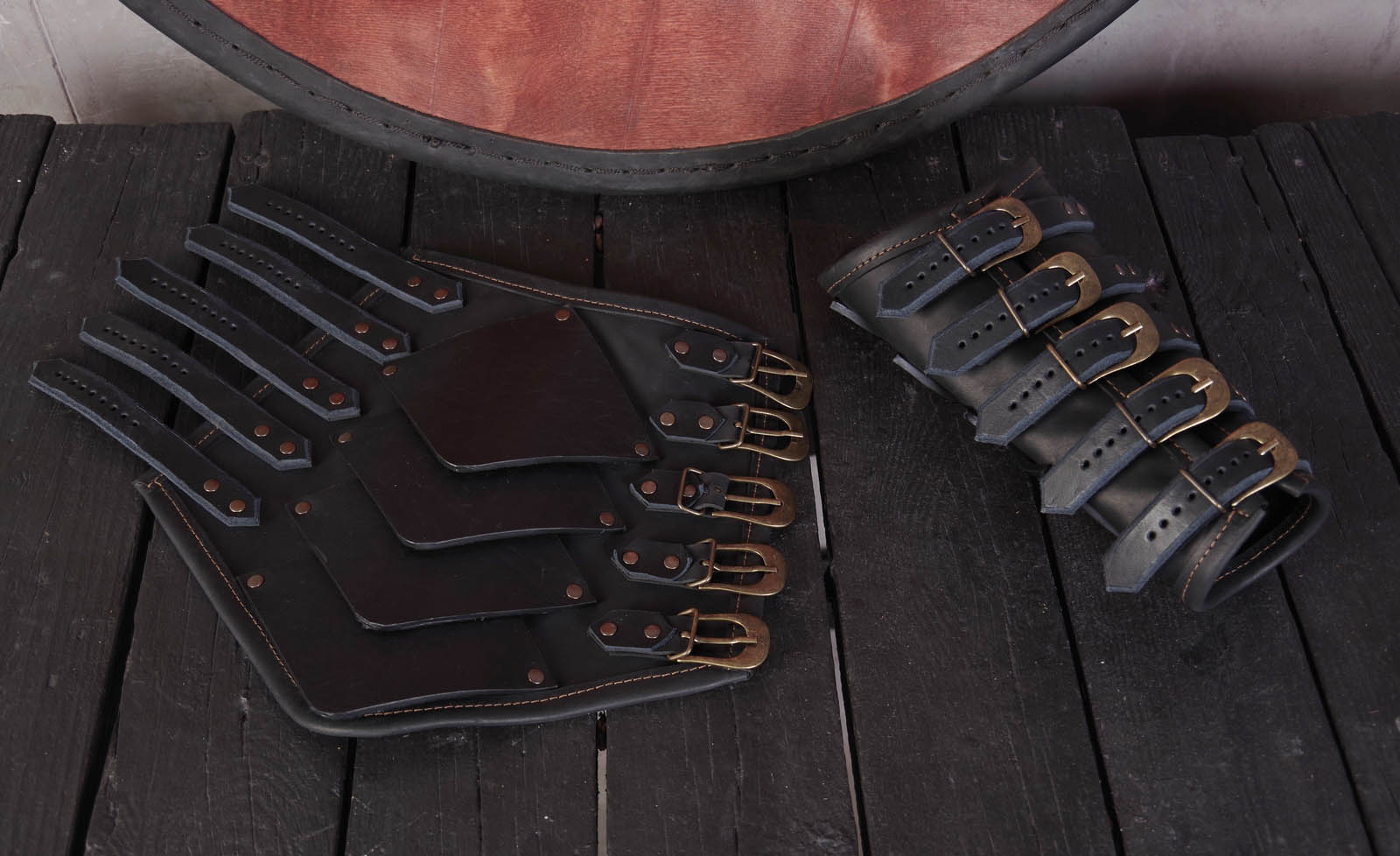 Well, these bracers are really cool, convincing example of functional leather armor. They may properly complete any fantasy-style costume of LARP armor. Or, they can become a base of unique battle look. Besides, there is not an accessory, but leather combat armour. They protect arms well, very light and do not hinder movements during fencing. Especially, when your battle style is dance with a sword.