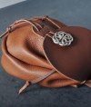 Leather pouch with brooch