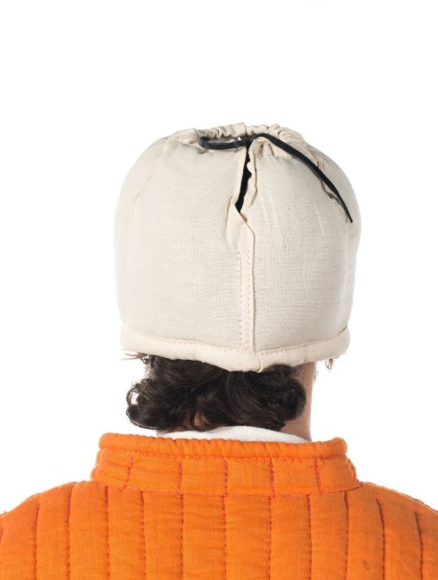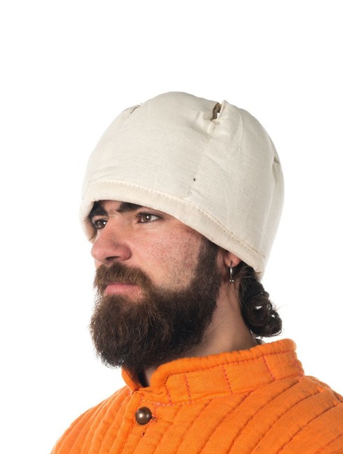 This model of liner is know from the XI century a.d. Cotton liner is worn under Norman, Phrygian or Conical Helmet, Kettle Hat, Morion and Sallets type helmets. It has drawstring on its top to adjust fitting up to your head size.