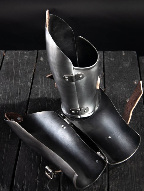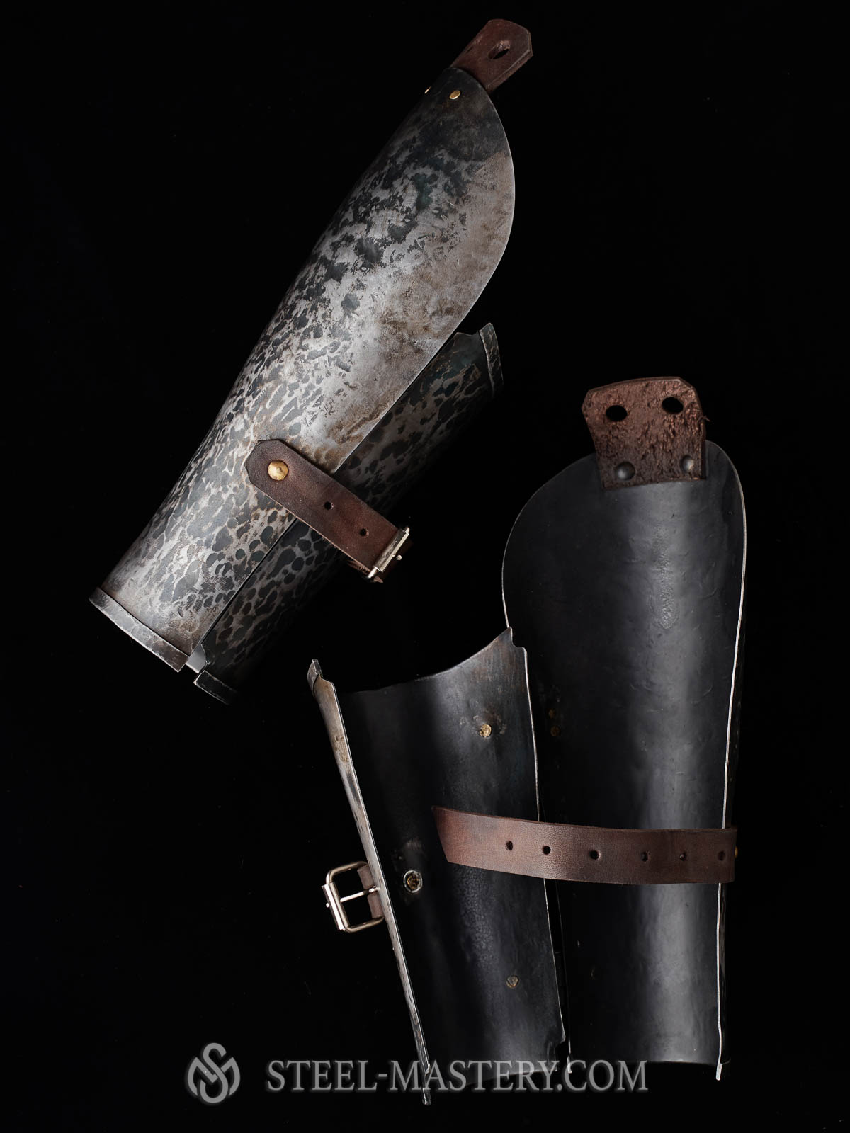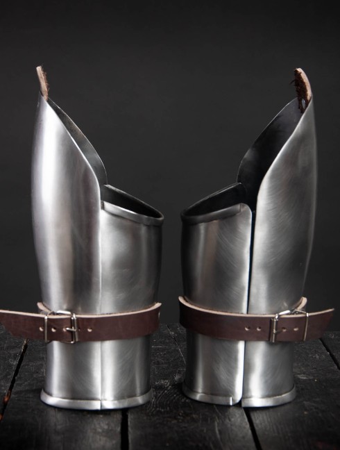 Medieval forearm guards are easily put on and removed; they protect arm good and will a nice complement to any European medieval armor on the cusp of the XIV and XV centuries: as classic Italian Bianco armatura and gloomy German Kastenbrust plate armor, so superb Italian Milanese armour. That is what makes choice of these medieval arms effective as from viewpoint of historical credibility, so financially rewarding ;)
