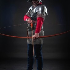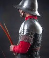 This man – English archer – wore plate spaulders. This cool guy’s outfit wasn’t that fashionable in the capital, however, trendy in Surrey. Simple chain mail, almost like this one (only a little bit shorter plus made of stainless steel), worn under the leather jack, and cabasset on the head. But the most interesting armor part was the shoulder blades that he got as a trophy from the fallen knight (do not ask how this happened, believe me – you don’t want to know).