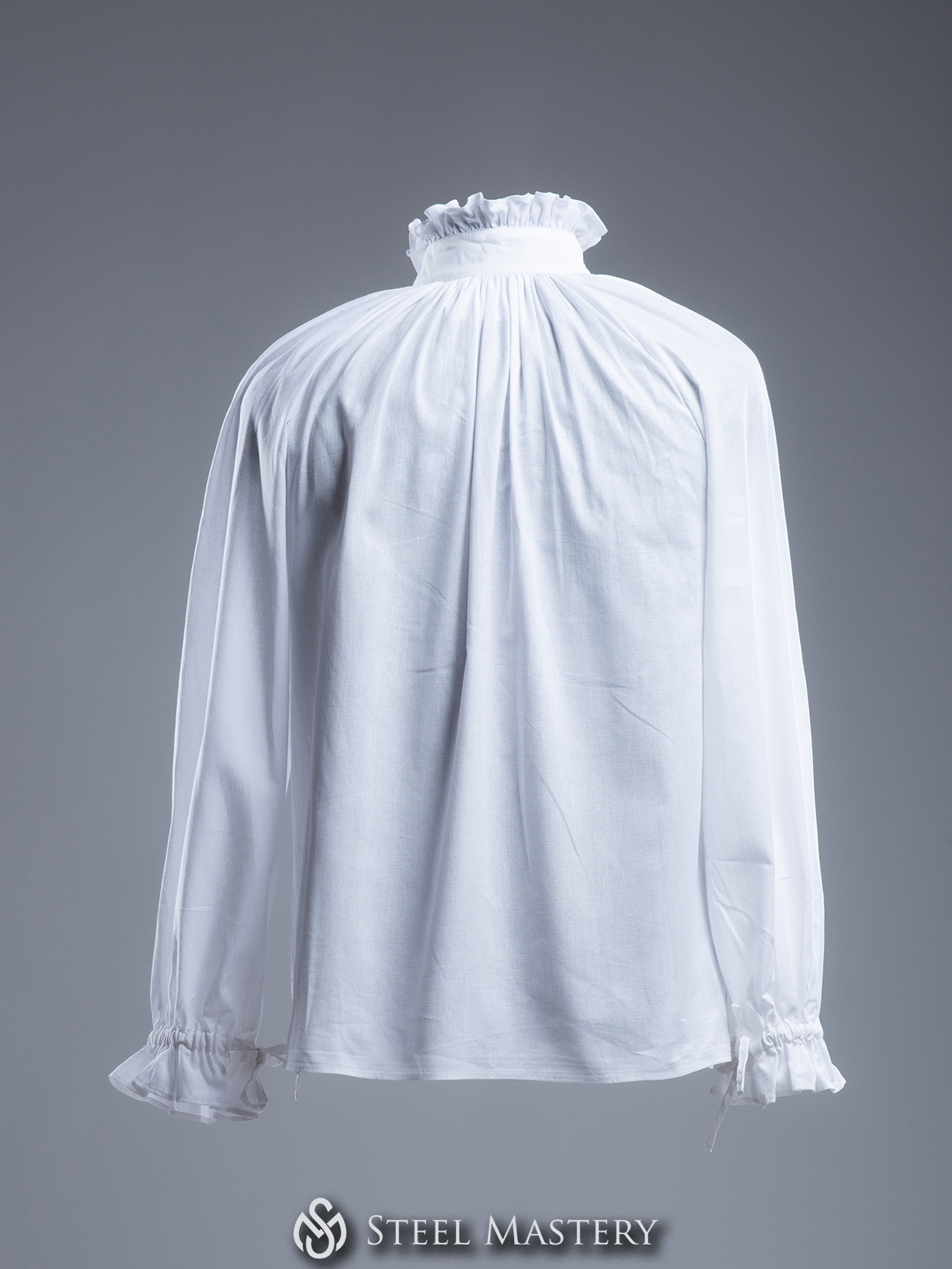 Medieval men's underwear shirt with rouches and stand-up collar.