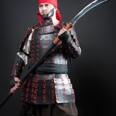 So, make yourself comfortable and have a look at this armored good-looker in front of you! Though, it is modest enough, this true son of the Land of the Rising Sun is steeped in Buddhist humility, hardened by spirit of bellicose warrior monks sōhei and is perfect even in details. From the splendid black leather, equally modest and striking, to the bright and firm cord of the noble and manly scarlet color, with which armor’s parts are fastened together. However, you may choose other colours of leather and cord by your wish.