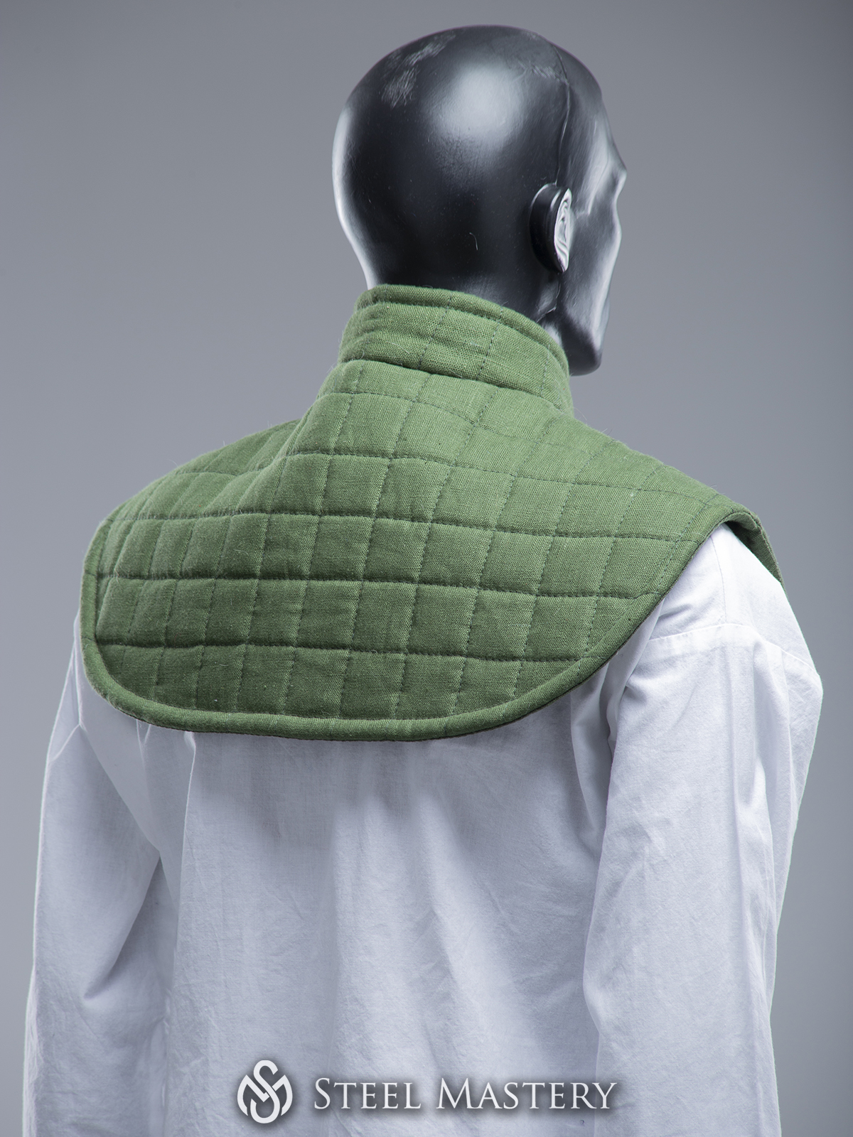 This padded pelerine is additional protection of neck and shoulders and goes good together medieval helmet, gambeson and brigandine. It shouldn't be ignored when choosing an armour. Such pelerine is not only historically corret, but is very functional.