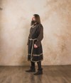 The item is historically correct model of pants that Danish countrymen had worn in the XIII-IX cc. Pants are wide on the thighs and have drawstrings on the calves.