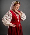 Our Polish noblewoman wears a puffy undershirt with richly decorated sleeves – completely satin stitched. Thin embroidery are also along the neckline and hem. Undershirt satin hand-stitching is an additional option, there is no embroidery in base price.