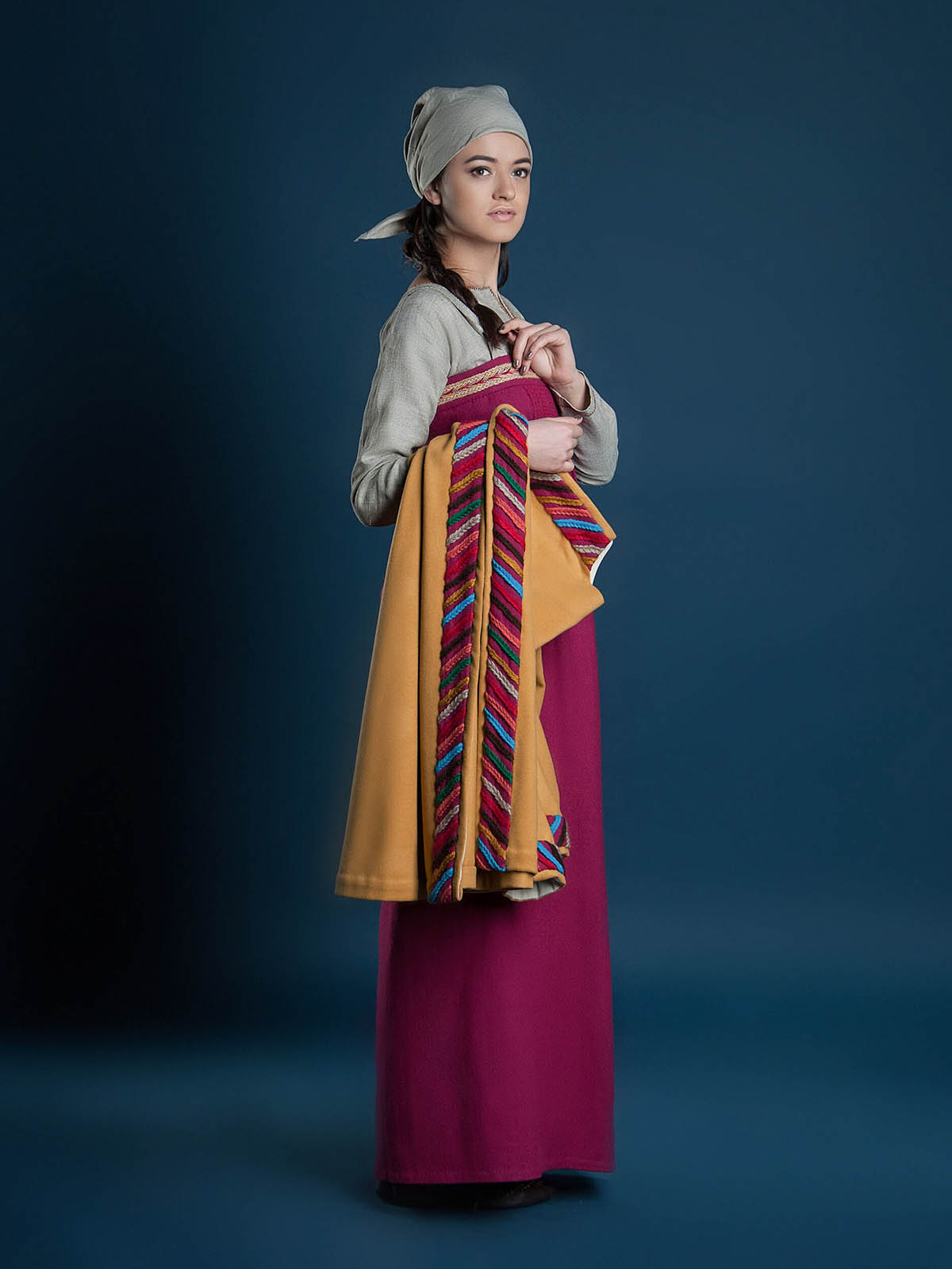 Headwear (shawl) is made of linen.