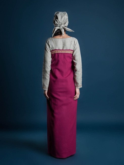 Undershirt (medieval chemise) is made of linen and decorated with hand-made embroidery around neckline and cuffs.