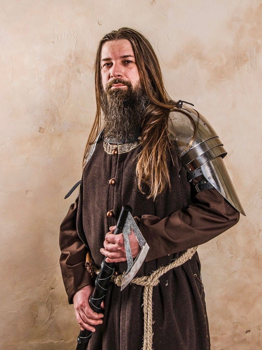Steel spaulders are a part of fantasy style costume “Dwarf”. This model is reliable and comfortable and despite of the not historically correct design, it can be used almost with any type of medieval body armour.