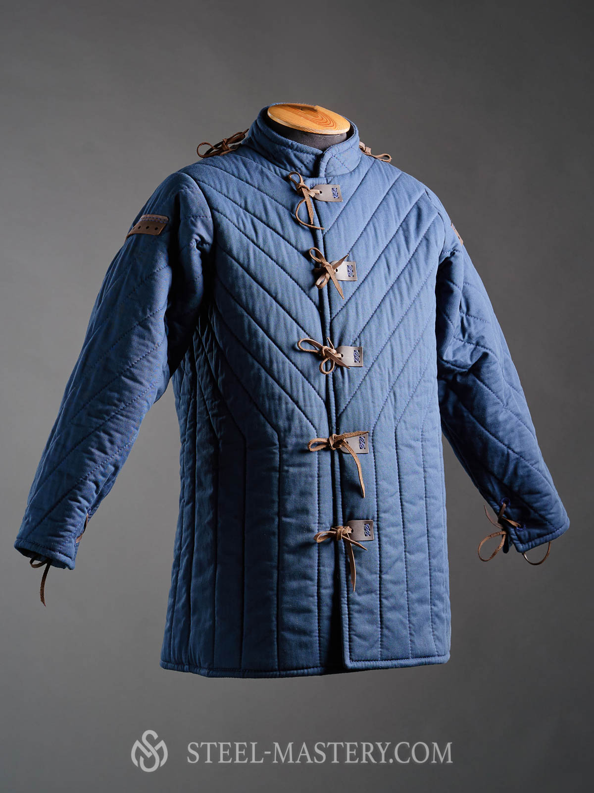 Puffed sleeves doublet Gambeson Sleeveless gambeson of XII-XIII centuries Gambeson FEMALE SLEEVELESS GAMBESON Gambeson LEATHER GAMBESON JACKET Gambeson HEMA FENCING JACKET   Gambeson GAMBESON AND CHAUSSES FENCING SET Gepolsterte rüstungssets Chapel-de-fer helmet Chapel helmets Padded chausses with a kneecap Gepolsterte beinlinge