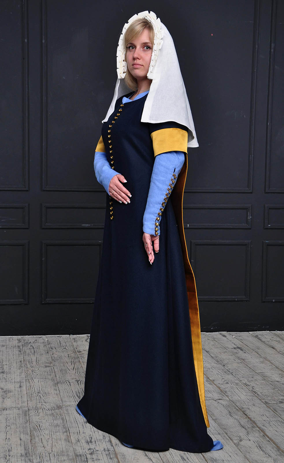 Classic English dress of the end of the XIV century is being manufactured according to the historically correct patterns and includes two elements.