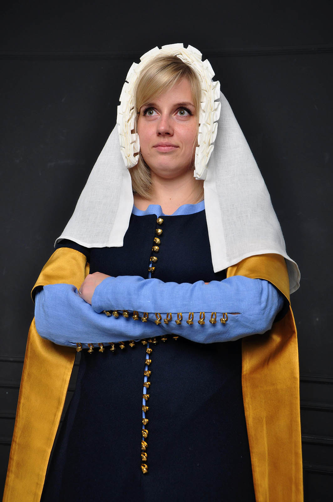 Medieval headwear cruseler of white cotton or linen will complete your look.