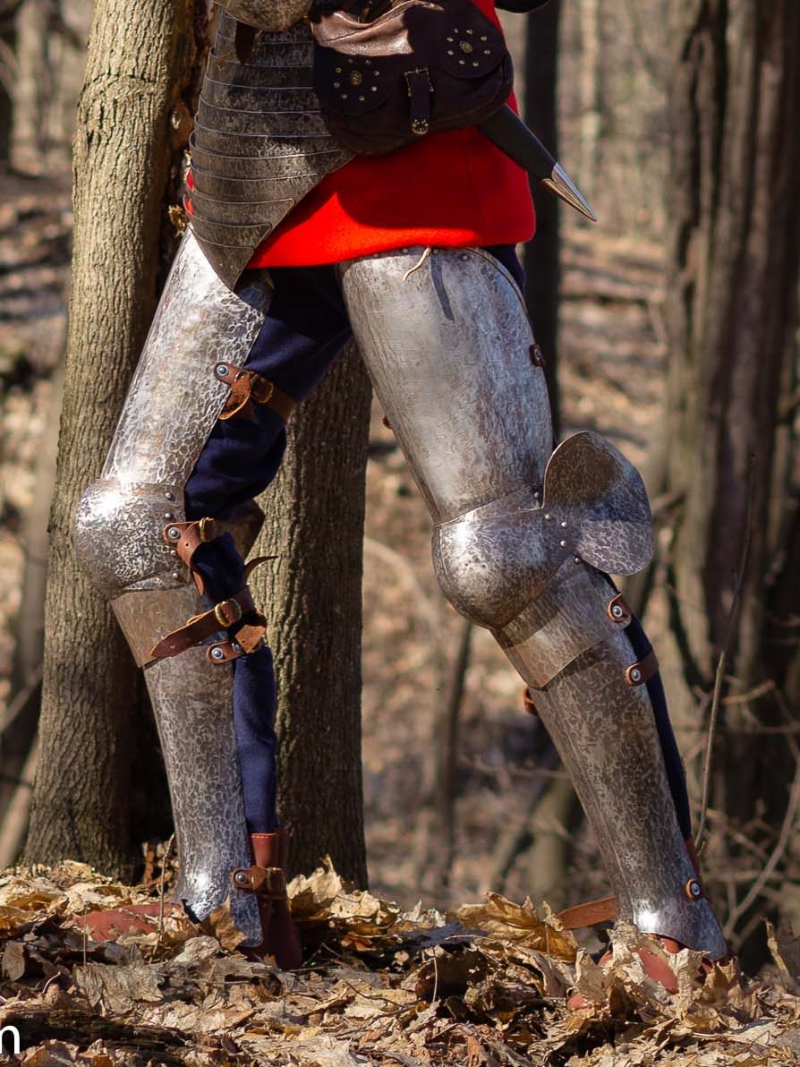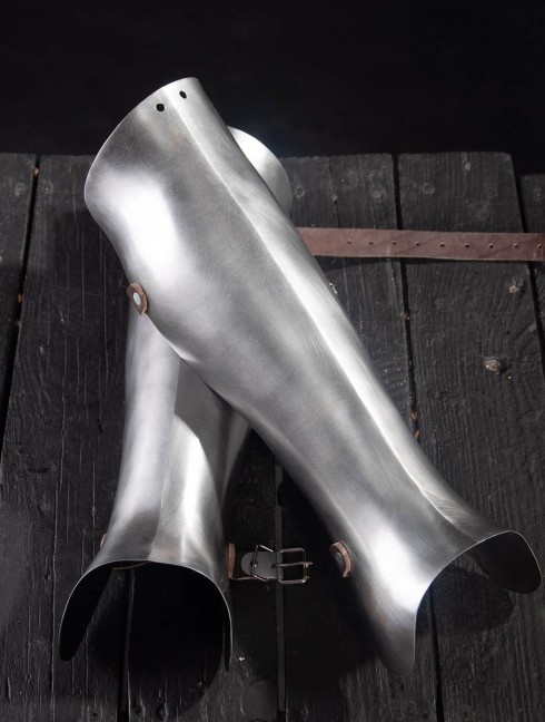 Half-greaves of the XIV-XVI centuries are the popular shin guard among medieval soldiers – as mounted, so dismounted. In combination with cuisses (thigh armor) and kneecaps, these greaves created full leg defense, comfortable and good protecting at the same time.
