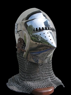 Helmet Bascinet of the XIV century was popular among medieval warriors all over Europe. Such head armor had various design with one main feature – they proved with perfect protection during the battle.