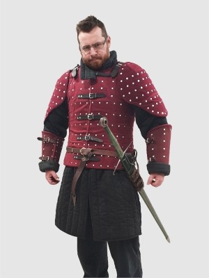 We recommend you to use this medieval body armour with gambeson, brigandine arms and leg protection.
