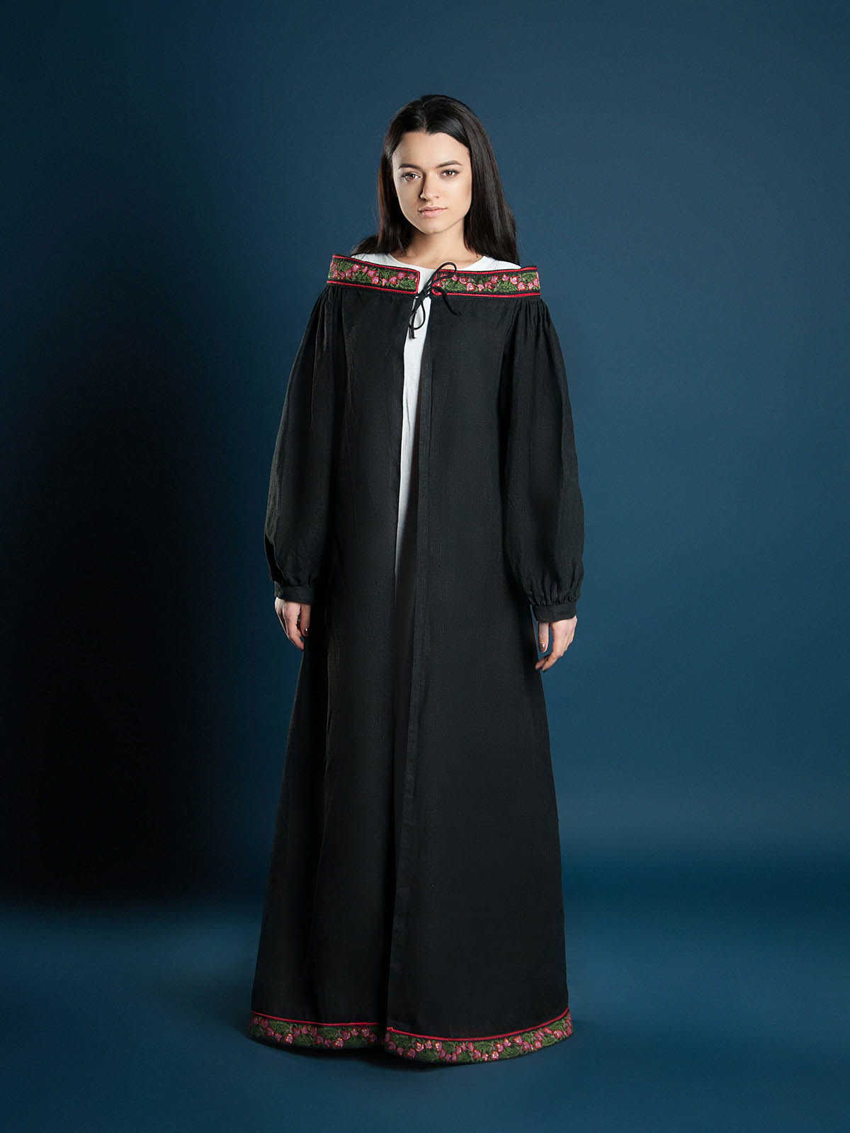 The coat with wide puffed sleeves is without lining and can be made of 100% natural cotton, linen or wool. It goes perfectly with the dress "Fairy passion" or any other dress.