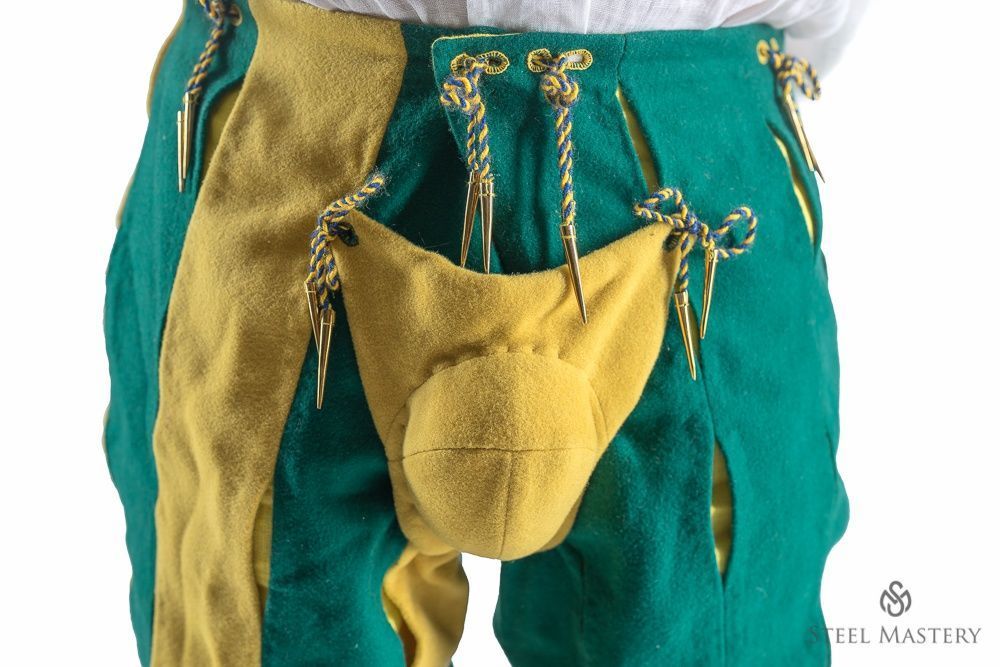 Cuts, where a lining could be seen, a lot of elements and decoration, bright colours - these features are typical for a garb of German sellsword.