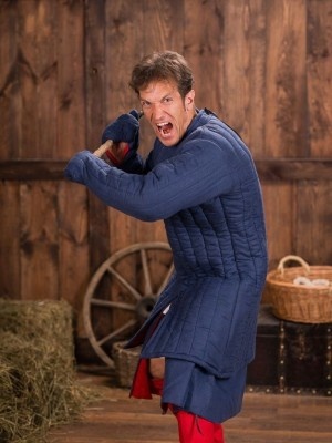 There is lacing on neck and sleeves, which allows you to fit this medieval underwear tightly. All holes for lacing are trimmed by hand.