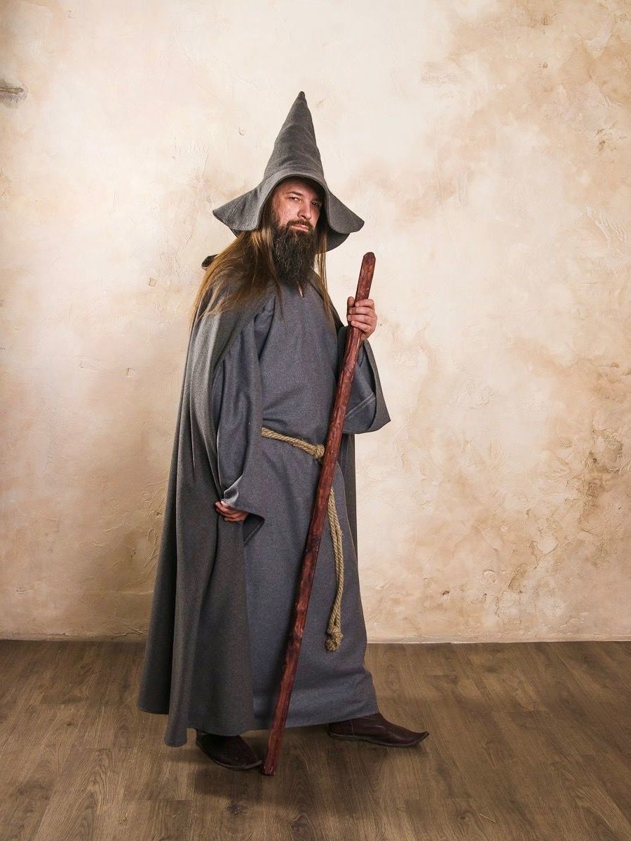 High pointed hat unerringly predicts a wizard in your appearance, and long loose tunic with hooded cloak provides you with freedom of movements.