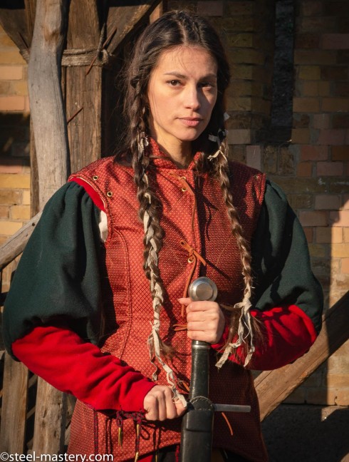 However, even in this harsh world, the most severe Lady needs reliable and soft padded protection under her armor. And since Lady always remains a Lady, the defense must not only be reliable, soft and quite historically authentic. Lady's gambeson should also be feminine. That is why we create this stylish padded gambeson for real Valkyrie who are ready to go into battle.