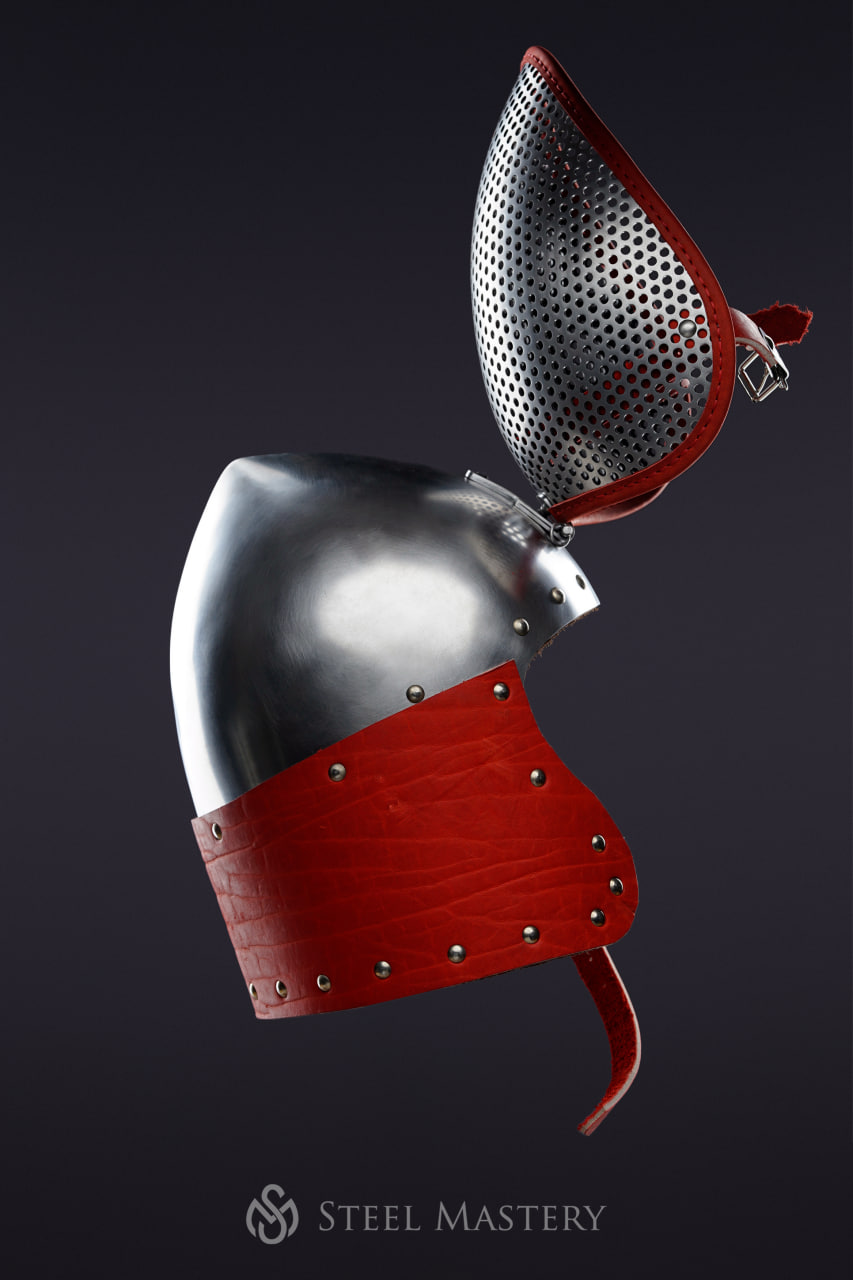 Fencing bascinet with a meshed visor for SCA/HEMA