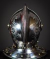 So, when we required sample of real medieval armor, not only beautiful and striking, but also suitable for real medieval fight both on the war and tournament, so we chose Cumberland armor without thinking twice. As this armor is flawless as visually, so functionally. Besides, among all the items from the arsenal of Greenwich workshop, it is best preserved, boggling the imagination up to now. This set is typical one, but the most beautiful representative of the Greenwich armor, featuring fanciful mix of armor elements from the other workshops. Although German blacksmiths stood at the origins of workshops, the cuirass and spaulders of this set were borrowed from the Italian armor, and helmet is Burgundian armet. Tasses and cuisses were taken from the Low-German and Nurnberg schools, other elements – from Augsburg workshop.