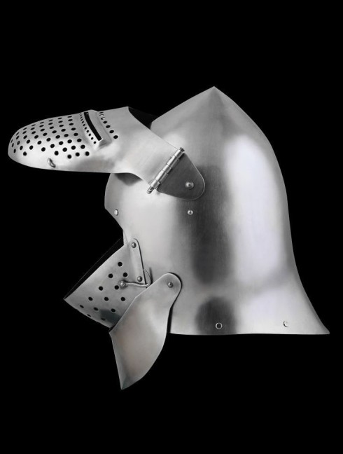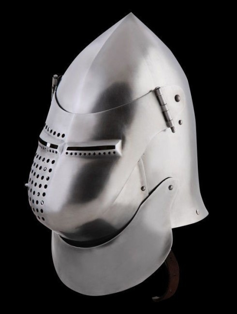 You may also like these models of functional medieval helms: Bascinet with side hinged visor, Onion-top bascinet with klappvisor, Bascinet with curved visor.