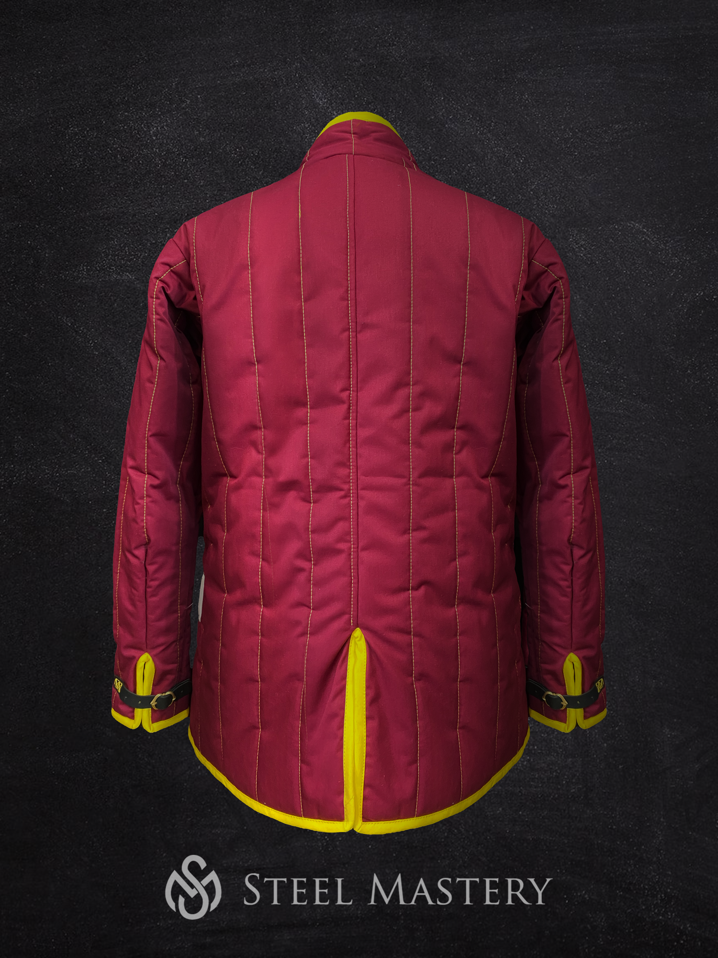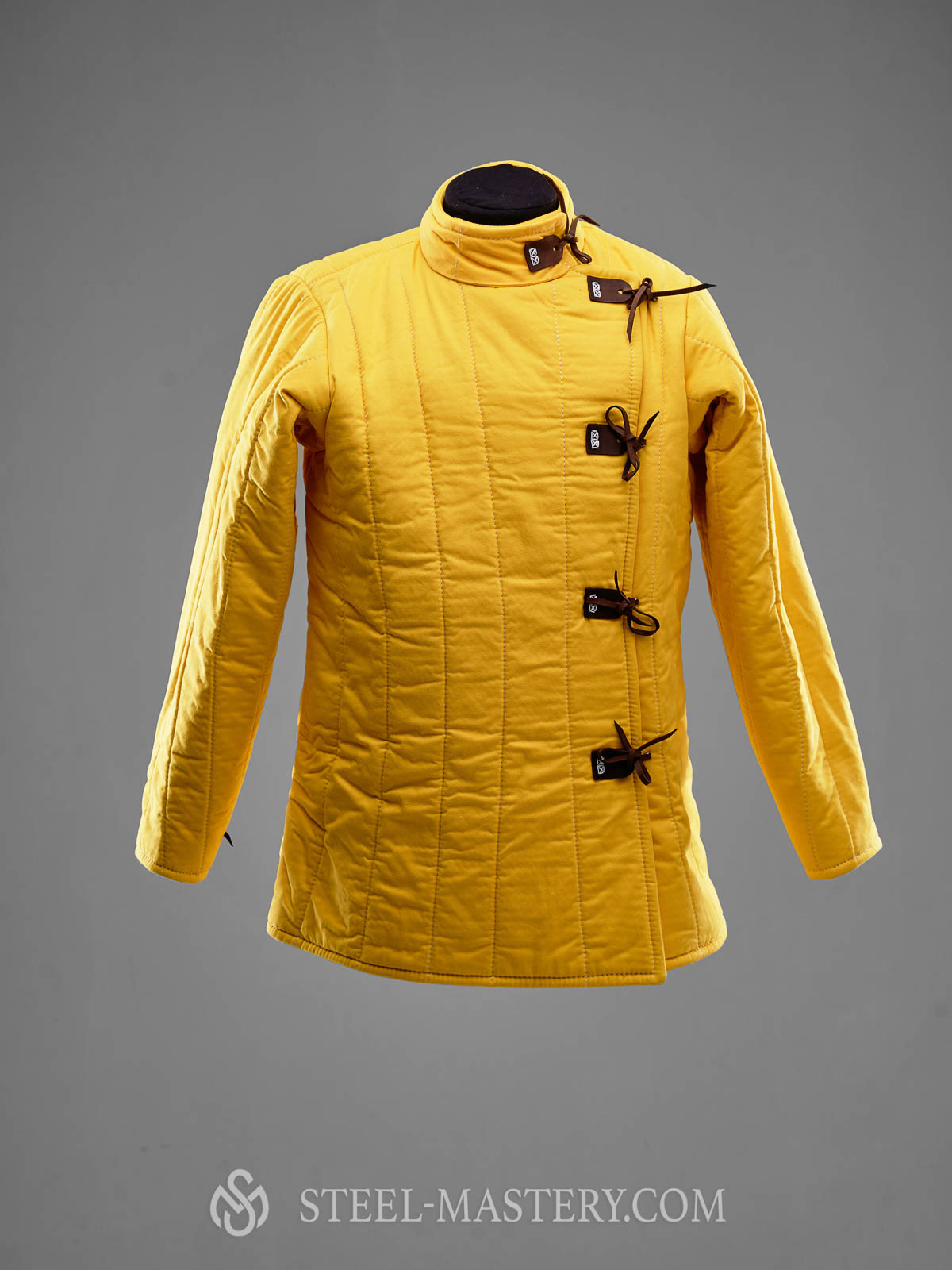 HEMA enough to take part in any HEMA event, medieval enough for most medieval festivals, LARP events, and stage performances. Even SCA events are possible – just order one with more padding layers.