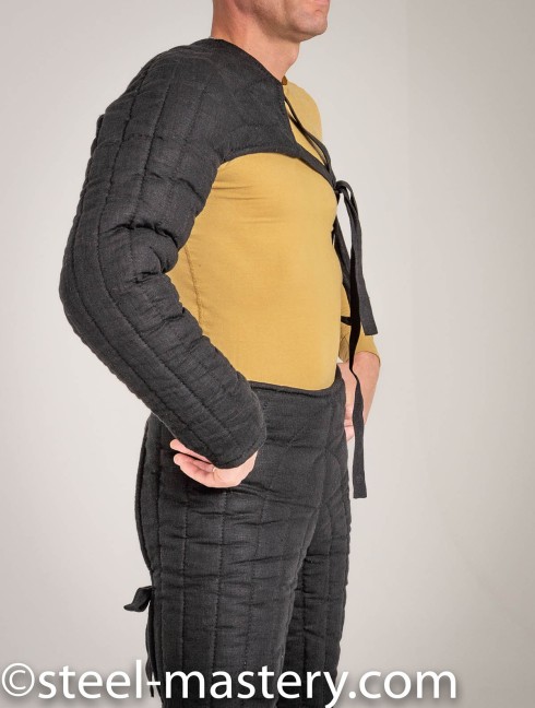 We made this cool arm protection especially for HEMA training. You will keep maximum freedom of arm movement with it, still having good protection at fighting. Moreover, you can use this specialized HEMA training fencing equipment for SCA battle trainings just adding a few more layers of padding in it. If you do not know how many layers of padding you need, you can firstly order Samples for gambesons layers padding to make a decision.