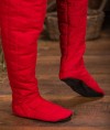 Classic medieval padded chausses can be used almost with any type of armour. They provides with perfect additional protection of legs, amortize strikes will and do not limit mobility. Leather sole makes chausses very comfortable. Chausses are being fastened with leather string to the wide fabric belt.