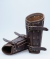 Long plates are made of firm croupon leather and riveted to the base. Belts on the inner side of bracers allow good fitting of protection.