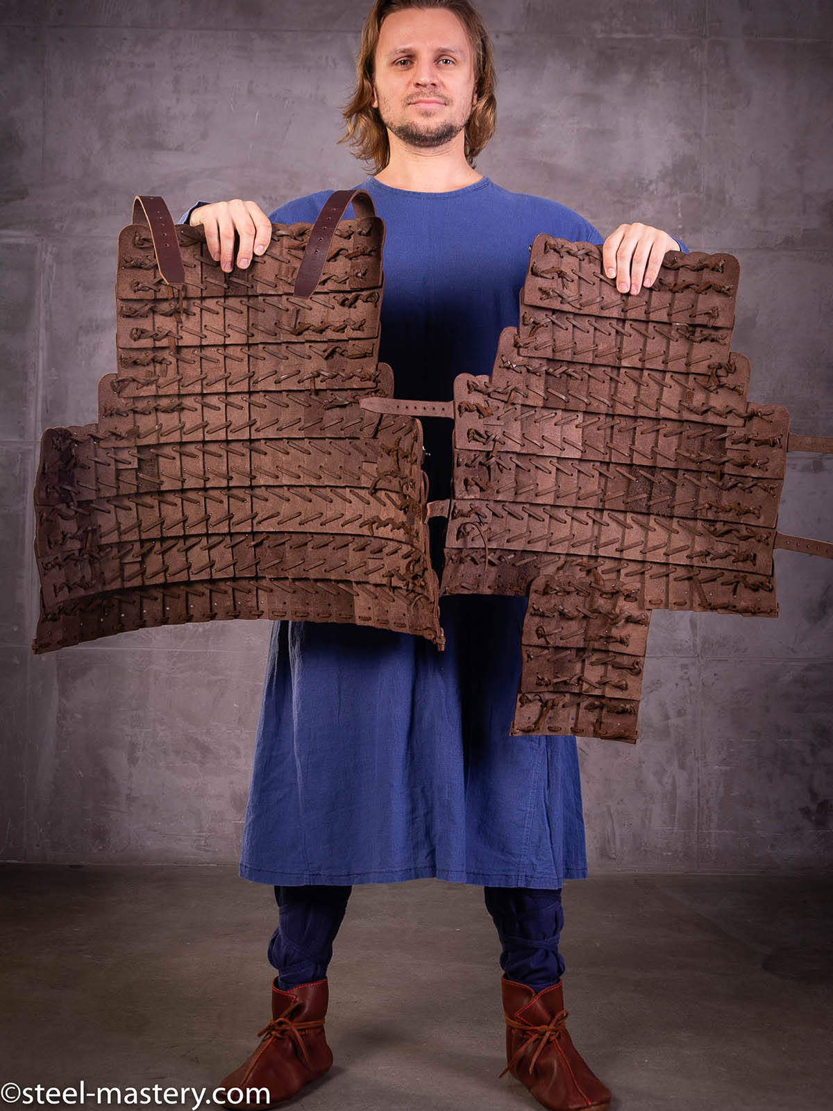 Remembering origin of lamellar armor, Steel Mastery artisans developed comfortable, light and good protecting leather lamellar armor set, which is ideal for reproduction of look and armament of Mongol warrior. It does not restrict movements of fighter and keeps combat qualities at the same time. There is functional leather armor for real connoisseurs.