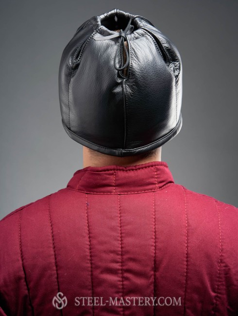 It requires the installation into the helmet. Leather liner is worn under Norman, Spangen or Conic Helmet, Kettle Hat and Sallets type helmets. It has drawstring on its top to adjust fitting up to your head size.