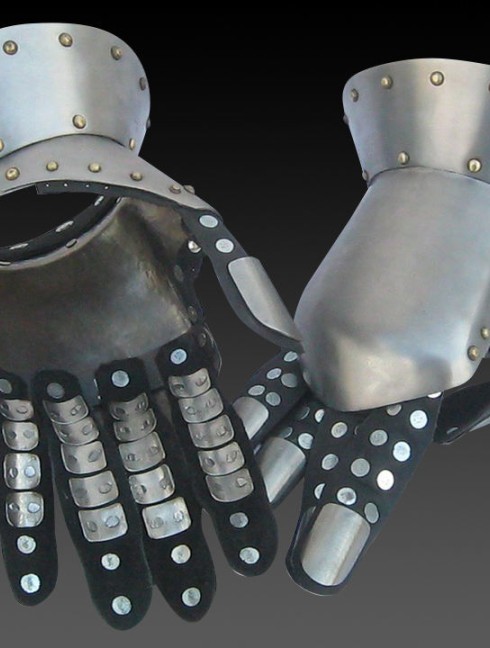 Wrist part is riveted to the plate, which covers outer part of hand. For full protection, we offer you to complete this knight armour with scale, brigand or articulated fingers. The advantage of these steel gloves is prolonged front part of the gauntlet. It protects your fingers from breaking during battle.